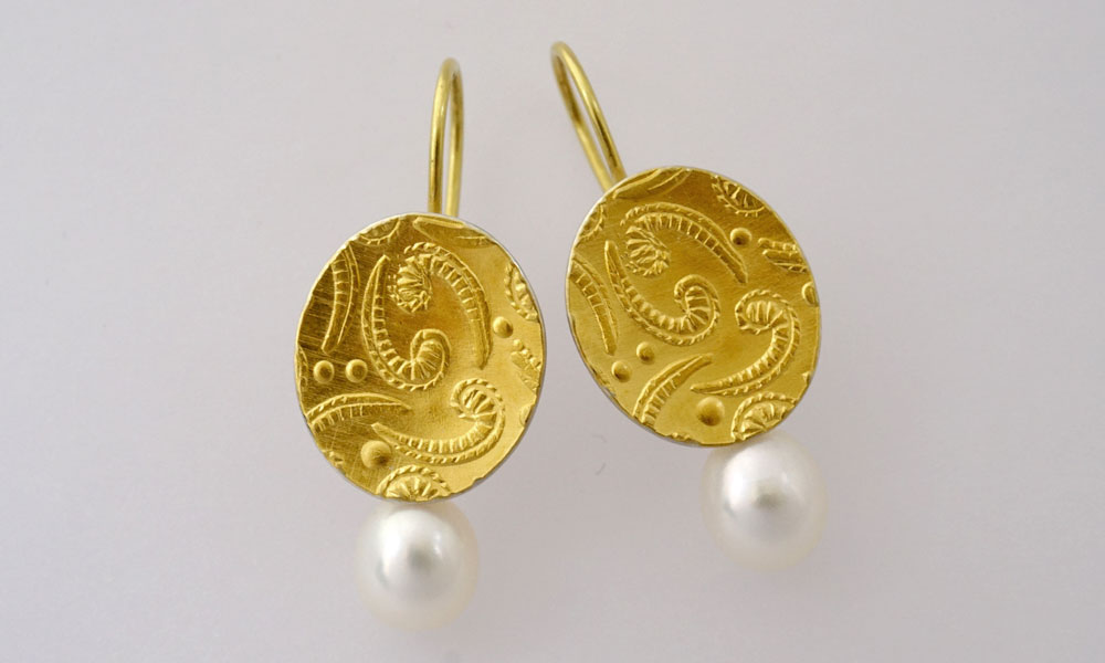 feingold auf silber geprägt, 3 x 2,5 cm, perle 0,5 cm.